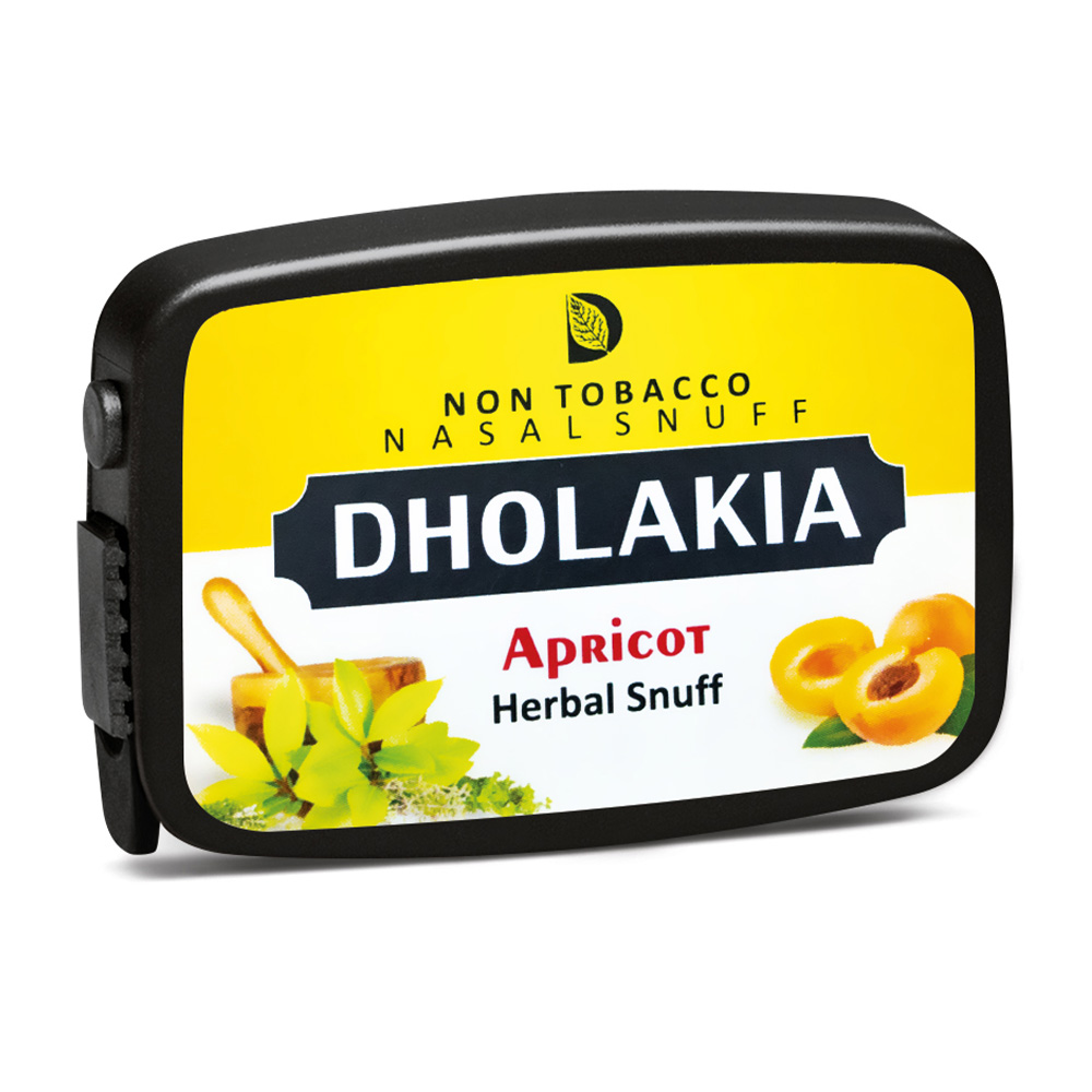 Das Dholakia Herbal Apricot Schnupfpulver gibt bereits aus der Dose einen fruchtigen Geruch nach Aprikose ab. Auch in der Nase sticht dieses Schnupfpulver durch ein intensives Aprikosenaroma hervor, welches von einer würzigen Kräuternote begleitet wird. Im Hintergrund ist eine leichte Mentholnote zu erkennen, die sich sehr gut unterordnet und nicht die leckeren Aromen überdeckt. Das Dholakia Herbal Apricot Schnupfpulver wird in einer 9 g Dose geliefert.