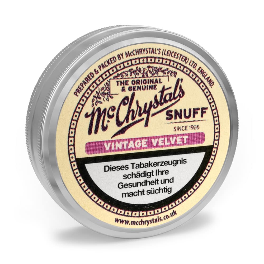 Der McChrystal's Vintage Velvet gibt bereits aus der Dose einen blumigen Geruch nach Veilchen ab. Auch in der Nase sticht dieser Schnupftabak durch das nach dem öffnen bemerkbare Veilchenaroma hervor, was für ein wunderbar blumiges Geschmackserlebnis sorgt. Der McChrystal's Vintage Velvet Snuff wird wahlweise in einer 3,5 g Dose geliefert. Die Nikotinstärke liegt im mittleren Bereich.