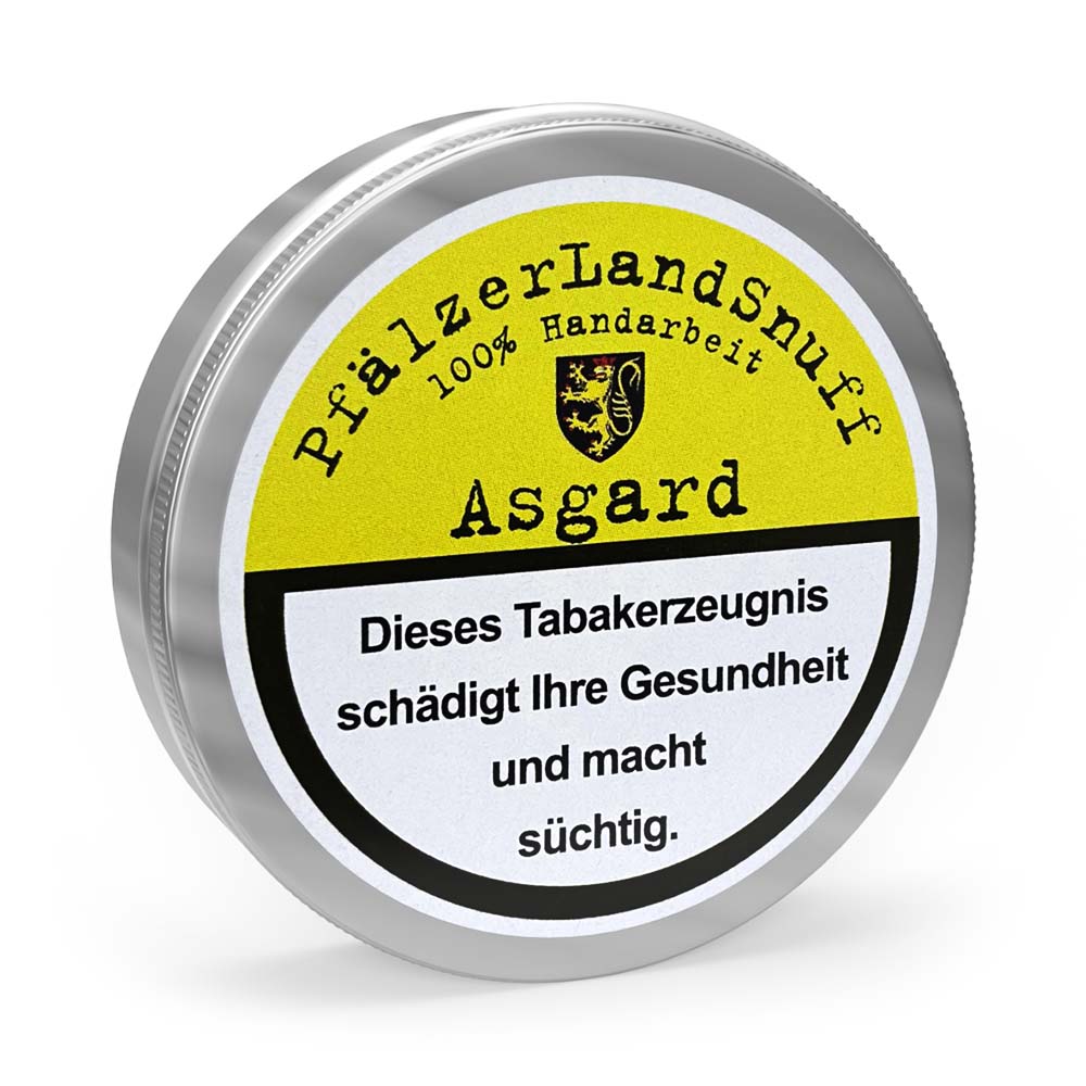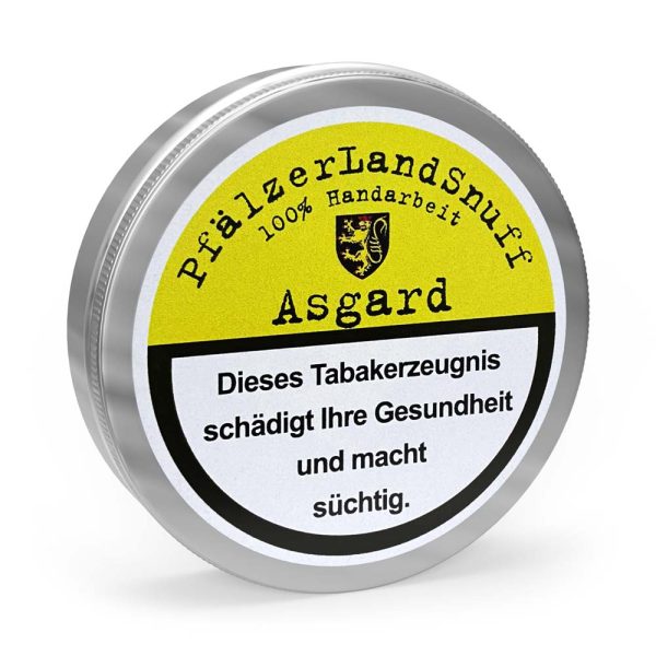 Der Pfälzer Land Snuff Asgard gibt bereits aus der Dose eine dezente Mentholnote ab, die von einer leichten Honigsüße begleitet wird. In der Nase gesellt sich neben der angenehmen Süße eine leicht fruchtige Note hinzu, die sich aus einer Kombination von Orange und Zitrone ergibt. Der Asgard Schnupftabak wird in einer Dose aus Aluminium mit 10 Gramm Inhalt geliefert.