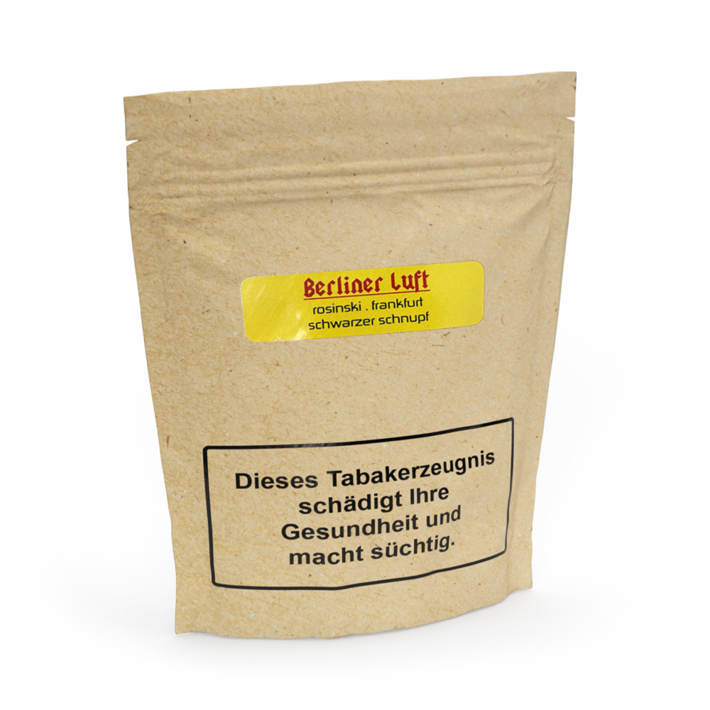 Der Rosinski Berliner Luft Schnupftabak ist eine Mischung aus leicht angeröstetem Burley und Skronowski-Tabak. Ein Hauch schwarzer Pfeffer, Bergamotte und Menthol runden diese Kombination ab. Geliefert wird der Rosinski Berliner Luft in einer Tüte mit 10 Gramm Inhalt.
