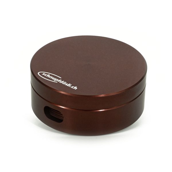 Elegantes Schnupfzubehör für Kenner: Das Schnupfdösli in Braun ist nicht nur ein Hingucker, sondern auch ein Ausdruck von Schweizer Präzision und Qualität. Gefertigt aus feinstem eloxiertem Aluminium, überzeugt die Schnupftabakdose mit Langlebigkeit und Robustheit.