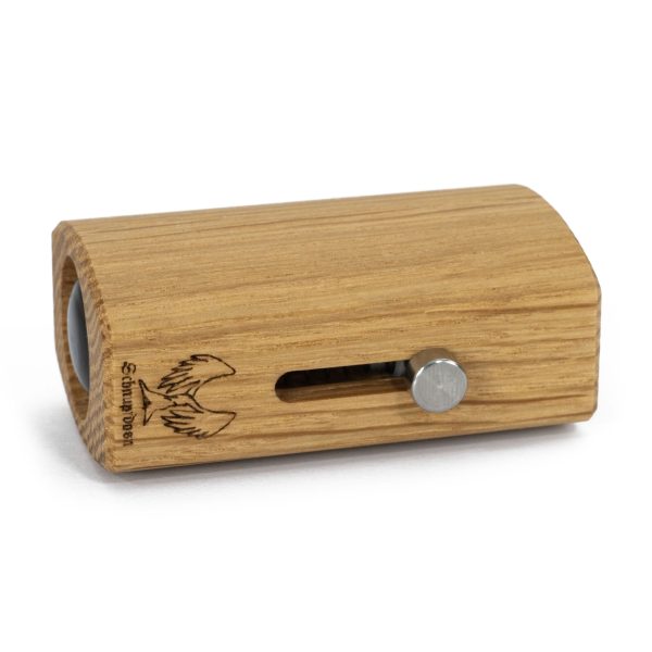 Die aus Eichenholz gefertigte Schnupftabakdose der Marke Schnupfdosn verbindet traditionelles bayrisches Handwerk mit moderner Funktionalität. Jede Dose zeichnet sich durch ihre kräftige Maserung aus und wird in einer spezialisierten Werkstatt handgefertigt. Das eloxierte Aluminium des Dosierkolbens sorgt für eine präzise Tabakentnahme, während die anderen Komponenten wie die Federstahl-Spannfeder und der Edelstahl-Bedienhebel zur Robustheit und Langlebigkeit beitragen. Zusätzlich kann diese Schnupftabakdose auch als Schnupfmaschine verwendet werden.