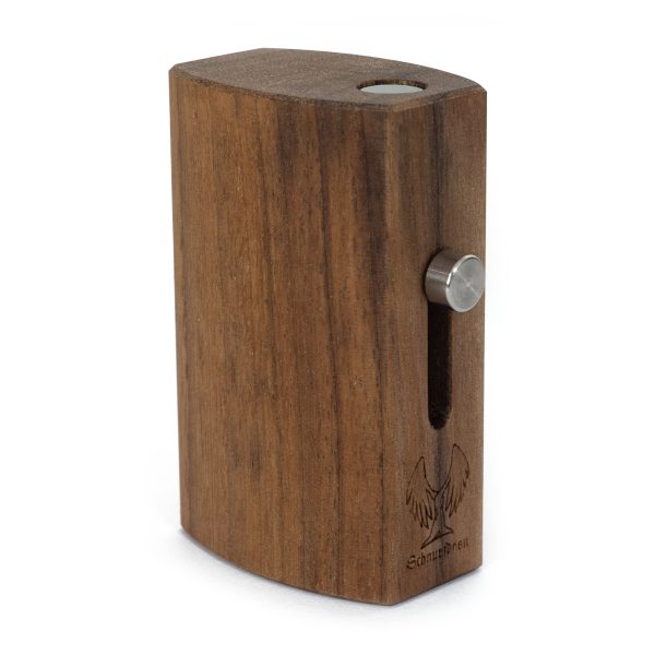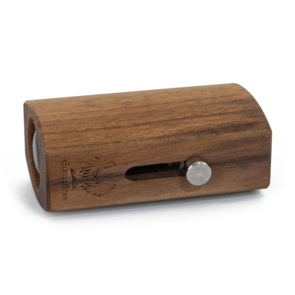 Die aus Walnussholz gefertigte Schnupftabakdose der Marke Schnupfdosn verbindet traditionelles bayrisches Handwerk mit moderner Funktionalität. Jede Dose zeichnet sich durch ihre dunkle und markante Maserung aus, die in einer spezialisierten Werkstatt handgefertigt wird. Das eloxierte Aluminium des Dosierkolbens sorgt für eine präzise Tabakentnahme, während die anderen Komponenten wie die Federstahl-Spannfeder und der Edelstahl-Bedienhebel zur Robustheit und Langlebigkeit beitragen. Zusätzlich kann diese Schnupftabakdose auch als Schnupfmaschine verwendet werden.