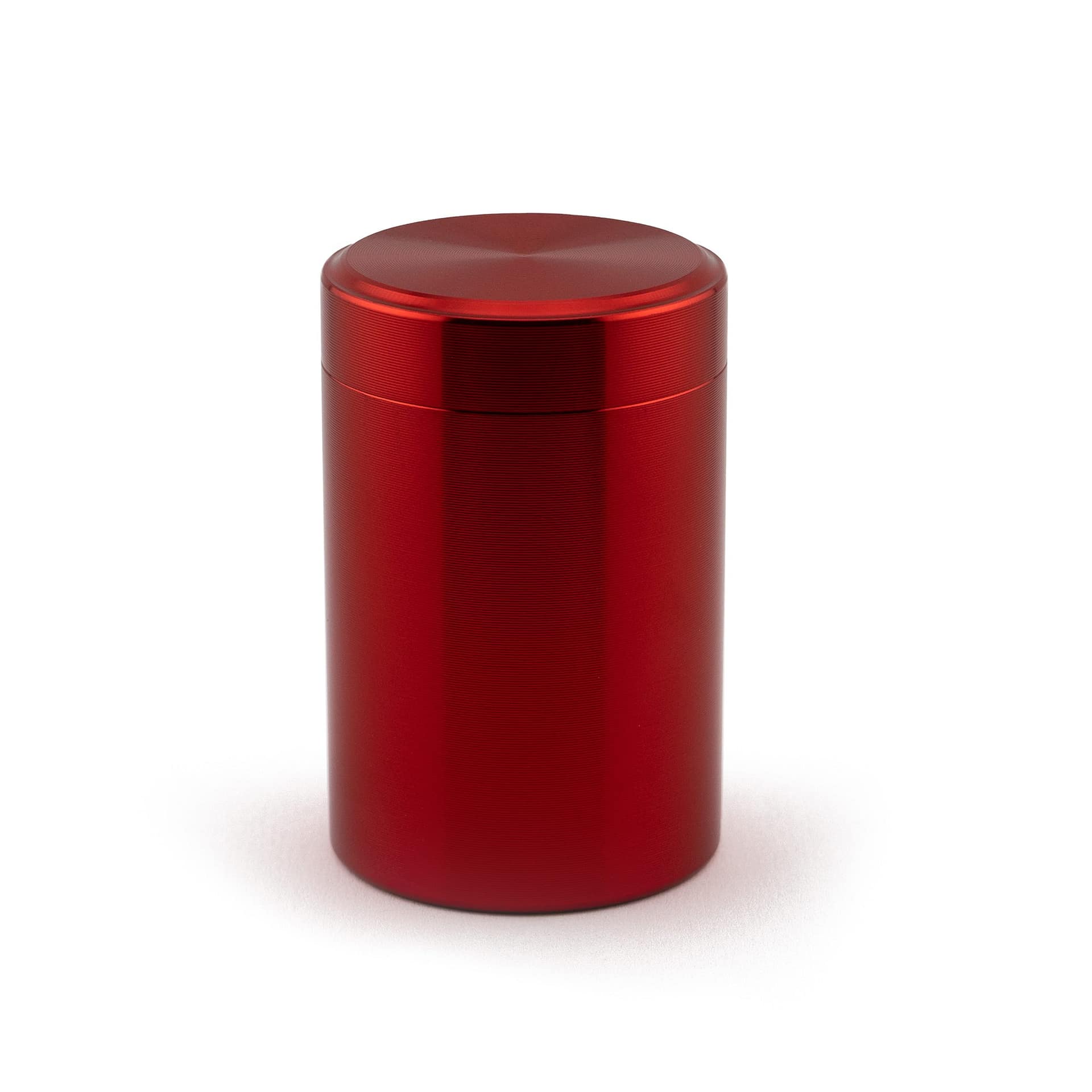 Robuste Schnupftabakdose aus hochwertigem Metall in klassischem Rot. Der praktische Drehverschluss sorgt für sichere Aufbewahrung, während die mittlere Größe perfekt für unterwegs ist. Das matte Finish macht die Dose zu einem stilvollen Begleiter für jeden Schnupfer.