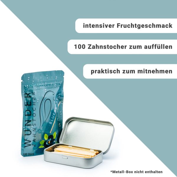 Wunder-Zahnstocher – Blueberry – Blaubeere – 100 Stück – Nachfüllpack – Zahnstocher mit Geschmack