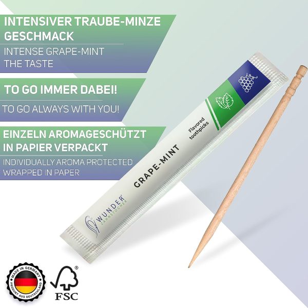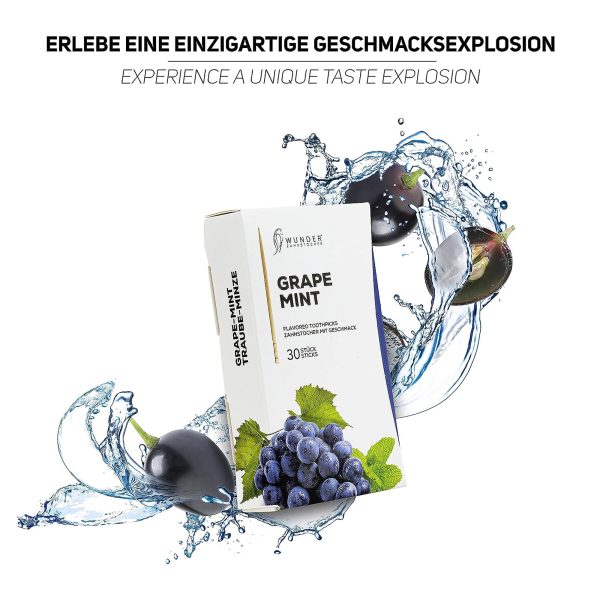 Entdecken Sie mit den Wunder-Zahnstochern Traube/Minze die perfekte Mischung aus Frucht und Frische in praktischer Einzelverpackung!